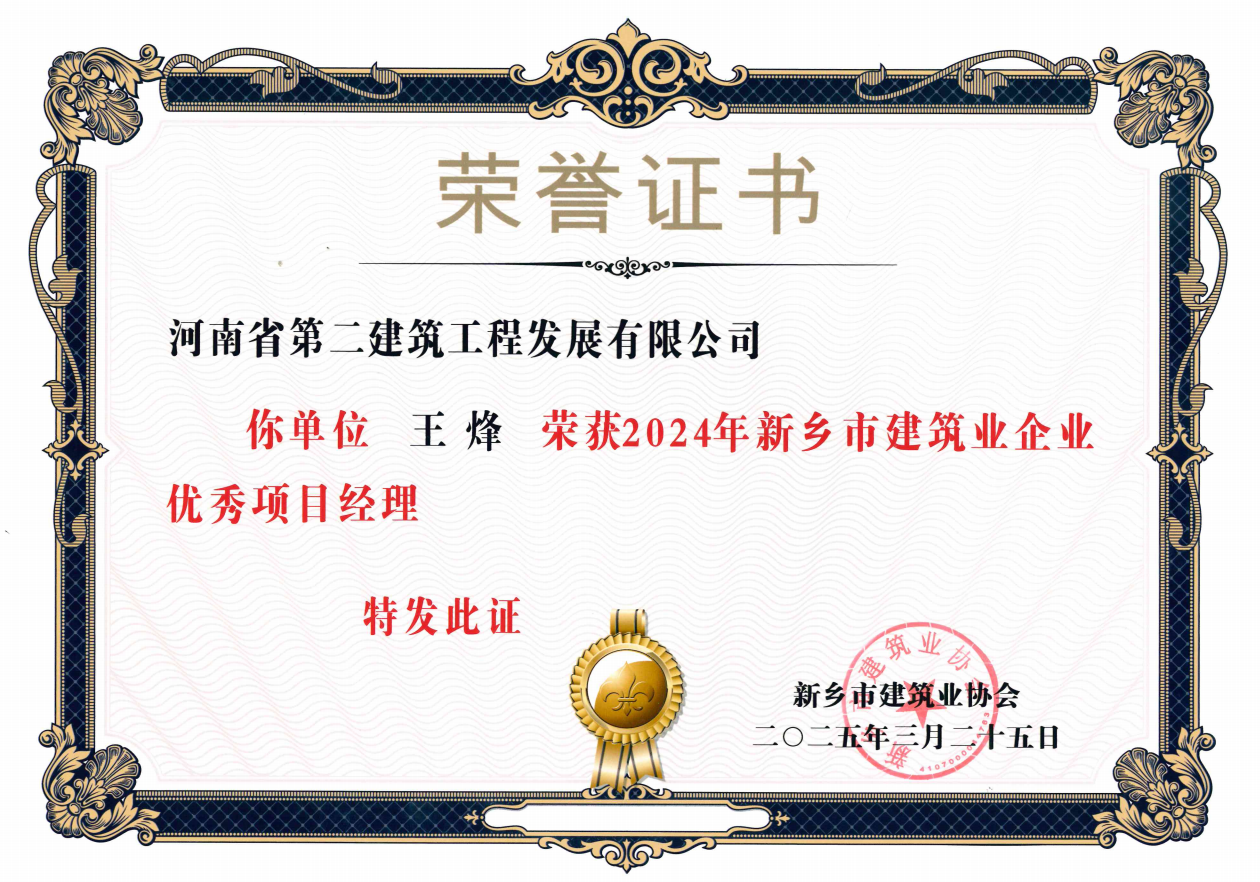 近日,由新鄉(xiāng)市建筑業(yè)協(xié)會(huì)開(kāi)展的2024年度新鄉(xiāng)市建筑業(yè)先進(jìn)企業(yè)、建筑安全先進(jìn)企業(yè)、建設(shè)工程質(zhì)量管理先進(jìn)企業(yè)、建筑業(yè)企業(yè)優(yōu)秀項(xiàng)目經(jīng)理評(píng)選結(jié)果公布,我公司成功當(dāng)選為新鄉(xiāng)市建筑業(yè)先進(jìn)企業(yè)、建筑安全先進(jìn)企業(yè)、建設(shè)工程質(zhì)量管理先進(jìn)企業(yè)。并有王烽、羅慧娟、陳玉偉、楊德軍、張會(huì)江5人當(dāng)選為建筑業(yè)企業(yè)優(yōu)秀項(xiàng)目經(jīng)理。