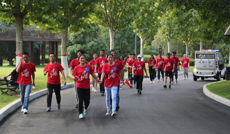 為慶祝新中國成立70周年,豐富員工業(yè)余文化生活,加強團隊建設(shè),增強企業(yè)凝聚力,9月30日下午,公司2019年“禮贊七十載,健步贏未來”徒步活動在鳳湖公園舉行,公司機關(guān)及周邊項目員工共計80多人參加了此次活動。